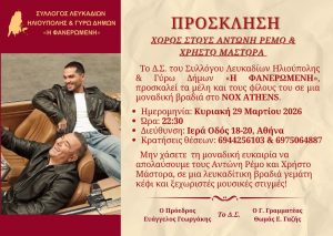 Ο Σύλλογος Λευκαδίων Ηλιούπολης & Γύρω Δήμων «Η ΦΑΝΕΡΩΜΕΝΗ» σας προσκαλεί σε μια ξεχωριστή μουσική βραδιά στο NOX ATHENS!